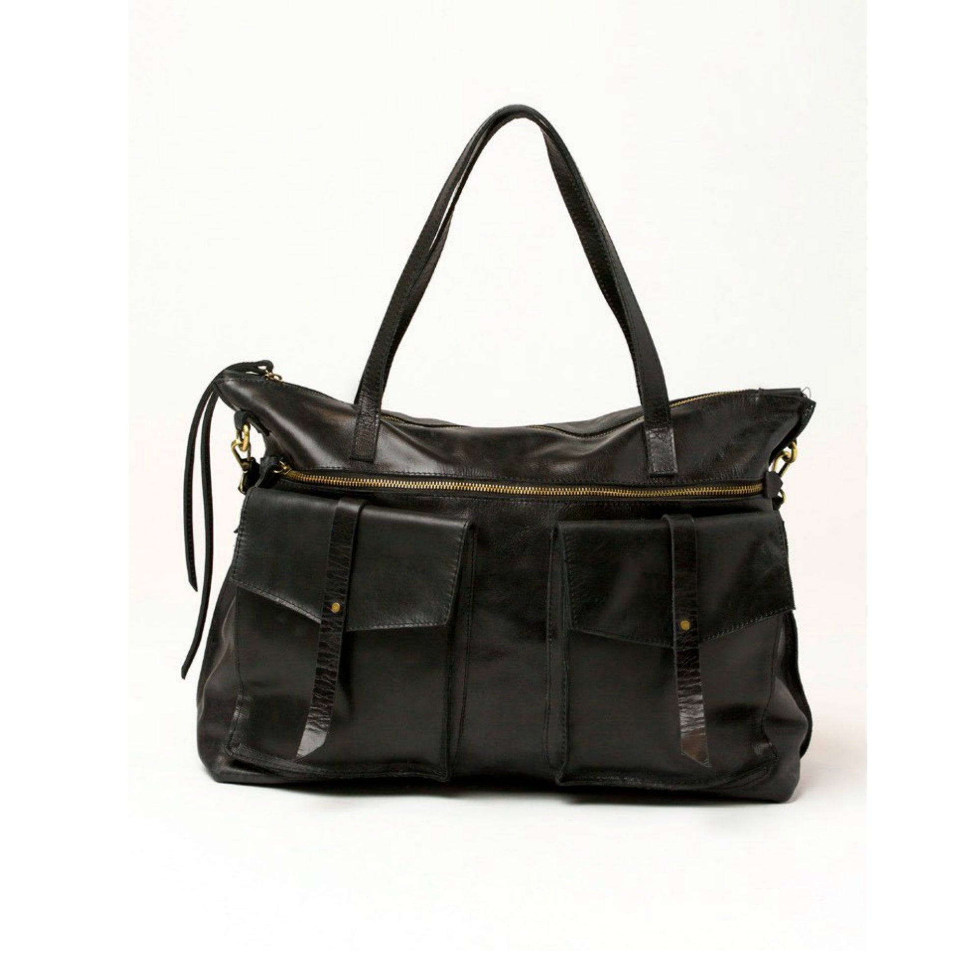A super, versatile bag that will go from the office to the airport to your favorite beach get-a-way in Ibiza. Crafted with vegetable tanned leather, which is easy on the environment. Roomy, with lots of zippers and storage options. Two handsome front pockets for stuff you need to grab in a jiffy. In black, rich brown tobacco or slate.