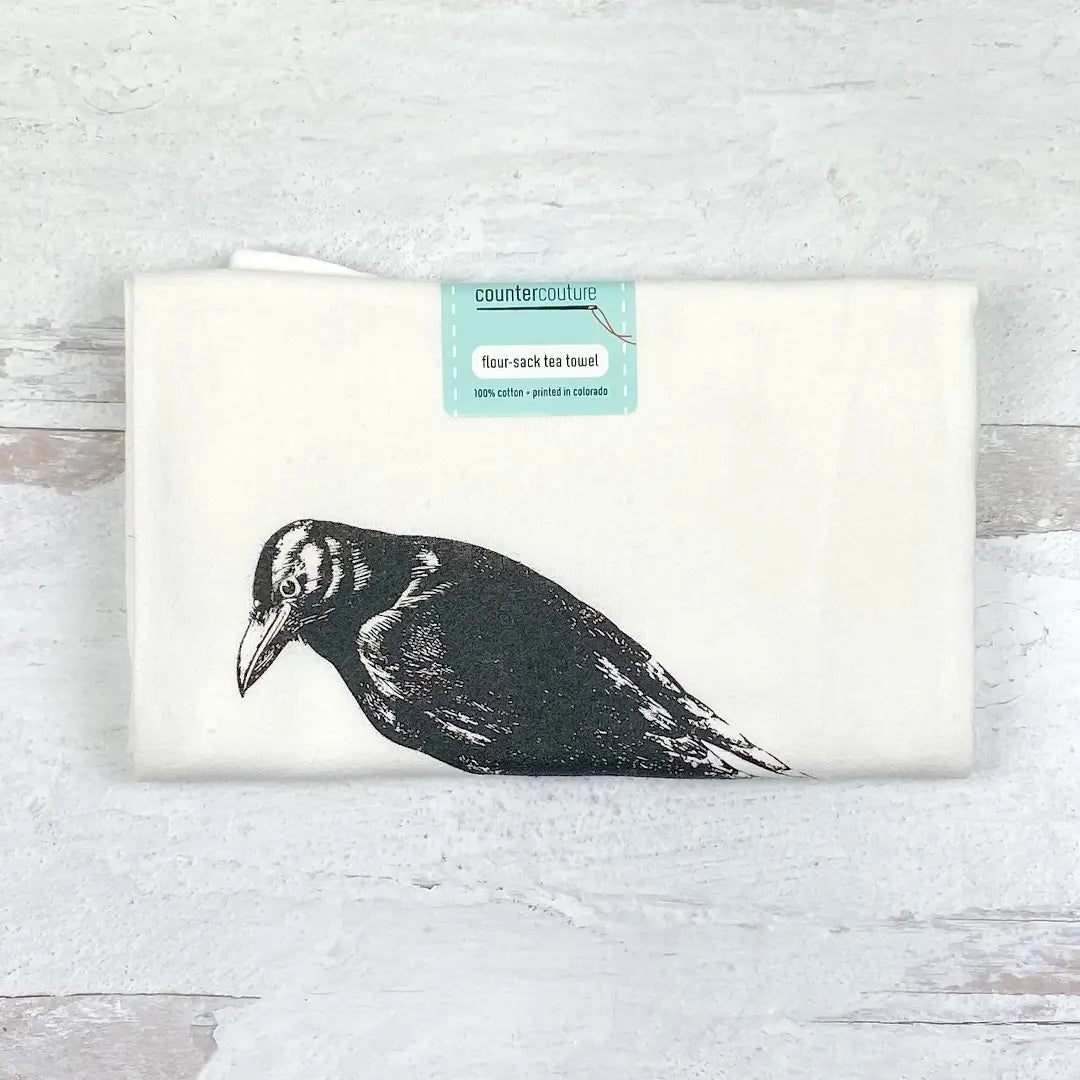 You will love the look and feel of our screen-printed Crow Kitchen Towels. Our classic flour sack towels are super absorbent and dry glassware and dishes without leaving any lint. We only use the highest quality inks, so the print will not wash out or fade.