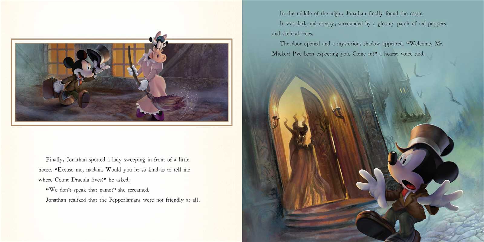 Discover what happens one gloomy night when Mickey, Donald, and their friends encounter the tricky Count Dracula in this illustrated storybook that includes more than 40 stickers! When Jonathan Micker (Mickey) arrives in Pepperlania one gloomy night, he meets a mysterious man named Count Dracula. The count loves red peppers and makes a very stinky red pepper soup that he uses to hypnotize people! Find out what happens when Jonathan Micker and his friends Arthur Duckwood (Donald), Minnie Mousey (Minnie), and Daisy Westenduck (Daisy) meet Count Dracula and eat some of his stinky soup in this fun storybook with more than 40 stickers! Disney fans of all ages will be delighted by this funny, spooky story about the tricky Count Dracula, Mickey, Donald, and all of their friends.