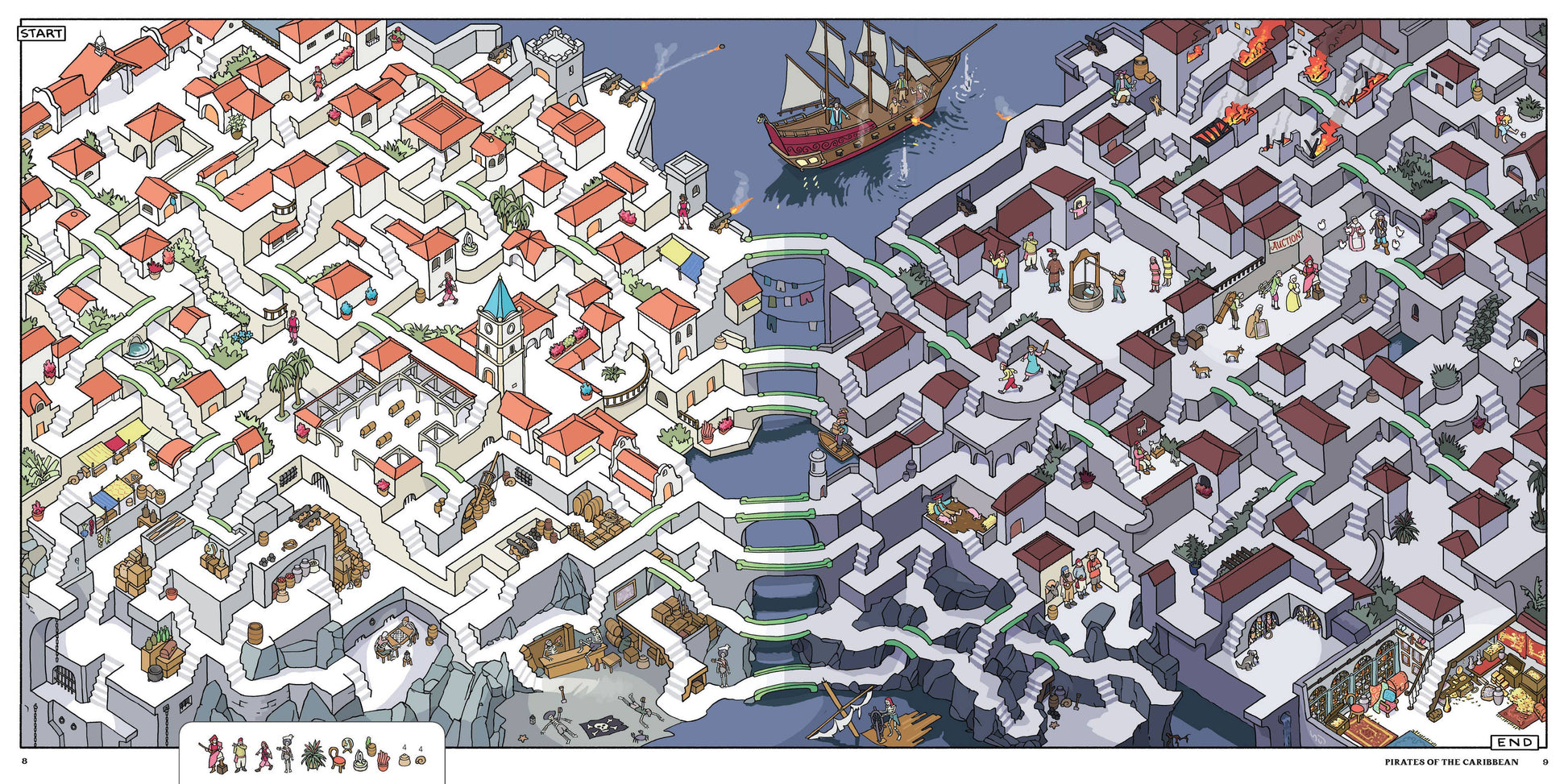 Inspired by the magic of the Disney parks, chart an imaginative course through their incredible attractions in this colorful, fun and challenging collection of all-ages mazes. Explore the Haunted Mansion, Pirates of the Caribbean, Space Mountain, 'it's a small world,' the Jungle Cruise, areas of EPCOT, and many other environments as never before. Hop on and off the monorail in search of findable elements within the maze. And much more! Featuring more than 30 mazes teeming with fun illustrated details and challenges, including international park attractions, by the expert maze creator author of Star Wars Mazes and Marvel Mazes, this all-new collection is the perfect interactive celebration of the wonderful worlds of Disney.