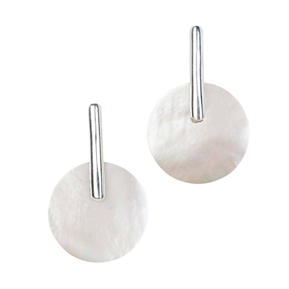 Materials: Sterling silver, mother of pearl - Measures: 1"L, 0.6"D disc - Colors: Cream, silver - Notes: Butterfly backing - Handcrafted in Peru