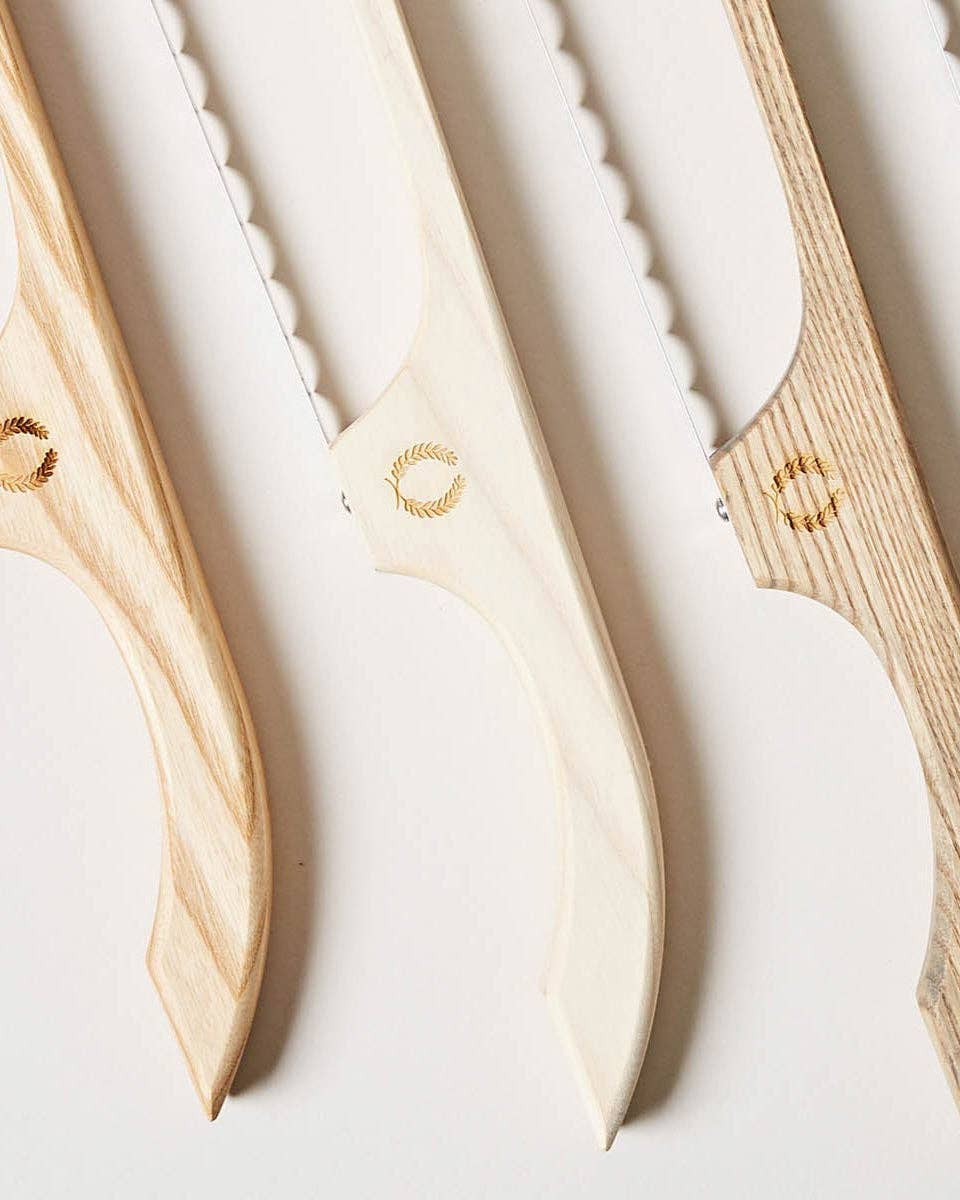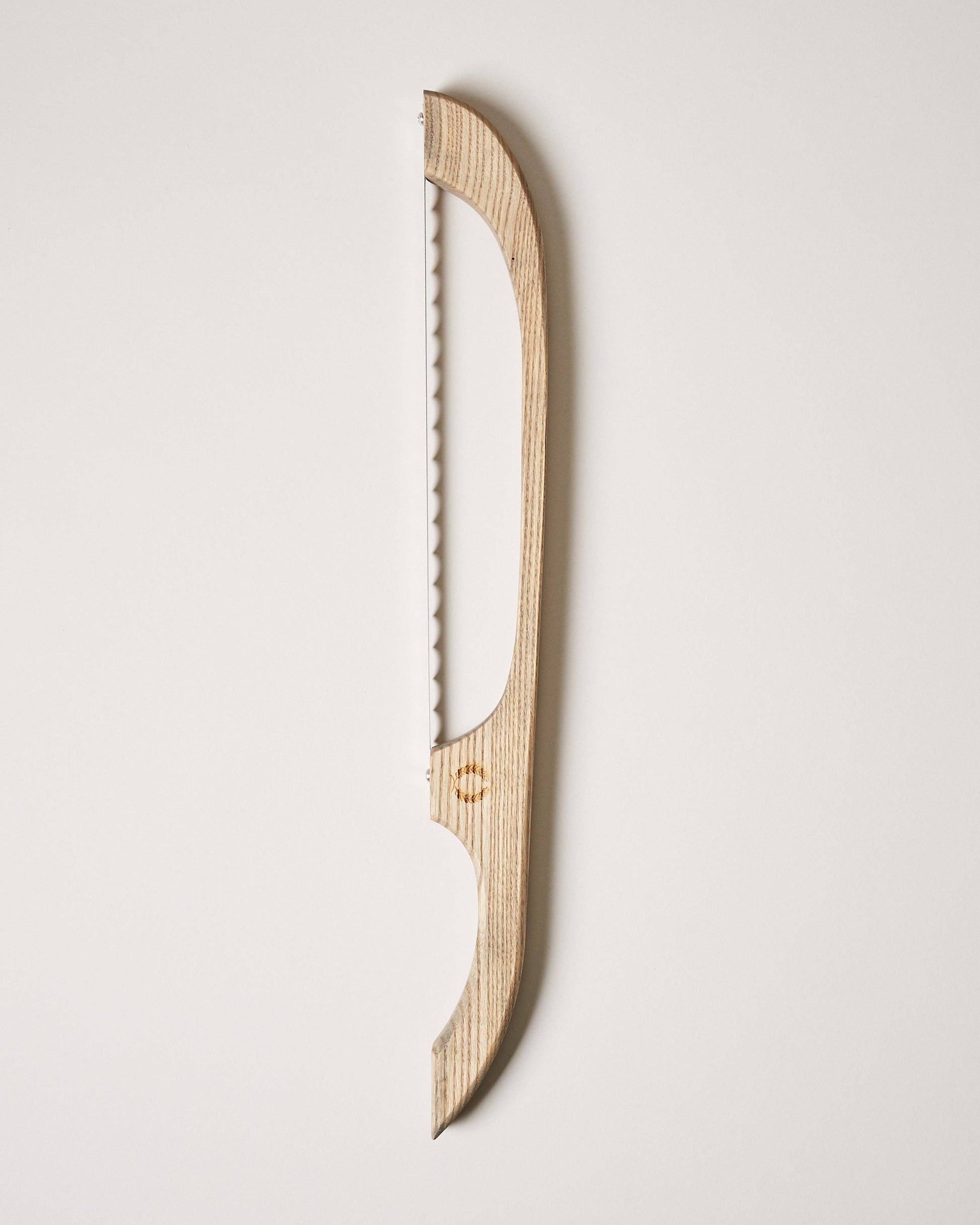 Inspired by old world European kitchens, we've reimagined the ancient tradition of breaking bread with our American made pantry bread bows. To use the bread bow, saw back and forth without any downward pressure. Keep the bow level and it will produce even slices every time. Dimensions: Bow: 17" x 1" Care: Rinse with warm water Condition as needed with our Beeswax Wood Conditioner Materials: Sustainably harvested New England Ash Food safe oil stain Wood finish and color may vary