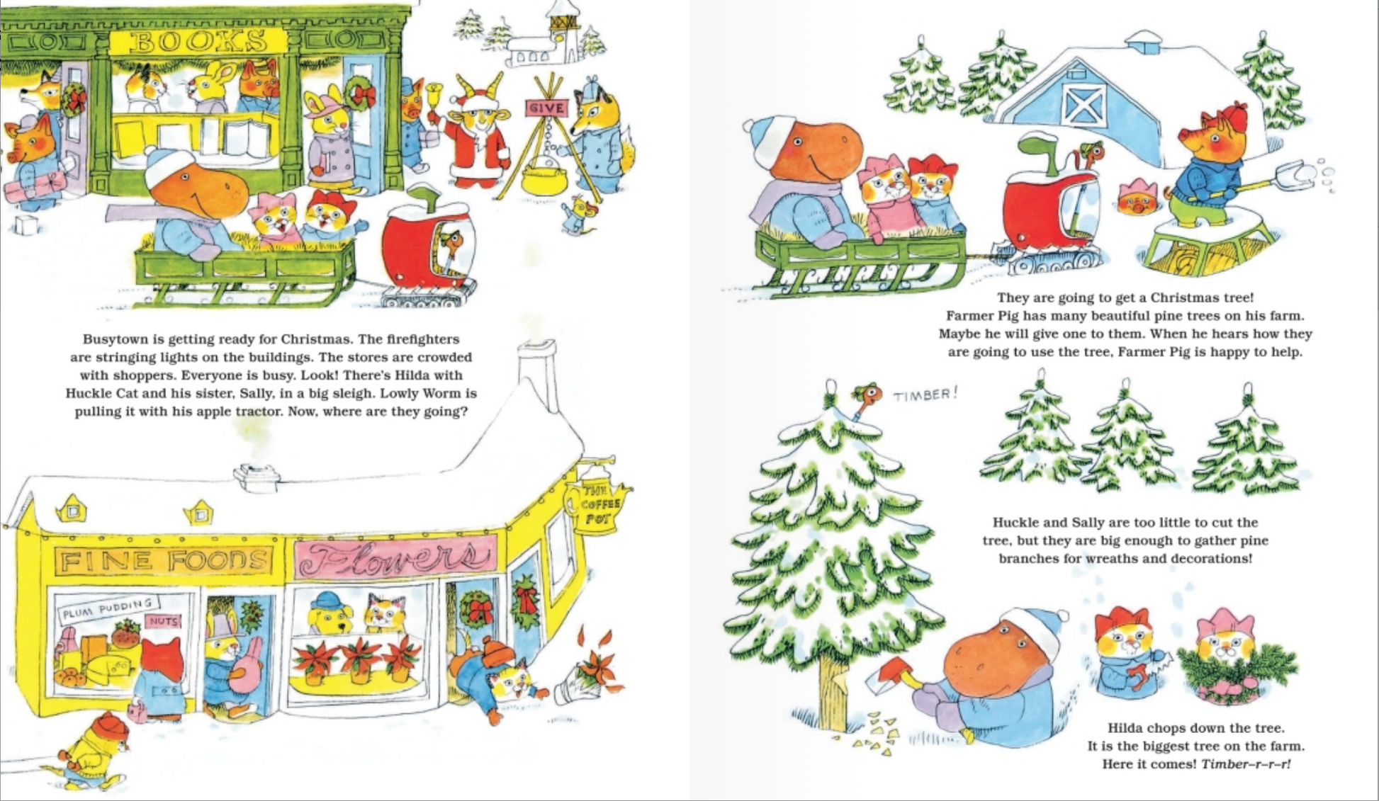 It’s Christmastime in Busytown! Join Huckle Cat, Lowly Worm, and all their Busytown friends as they prepare for the holiday season! A great way to introduce young children to the friendly characters in Richard Scarry’s Busytown.